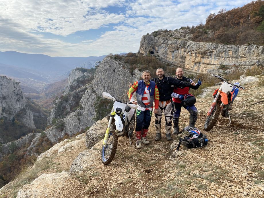 Для того что бы получился отличный эндуро тур в Крыму- мы отлавливаем 5-10 эндуристов, размещаем их в комфортабельной гостинице, одеваем в профессиональную экипировку и садим на лучшие мотоциклы. Для полного приготовления погружаем в природные красоты Балаклавы, Ялты и Бахчисарая, преправляем сложными тропами, маринуют эндуристов лучшие тренеры и гиды. В последний день запускаем всех на катере вдоль берега на мыс Фиолентю Вот и готово пятидневное приключение в крымском стиле.